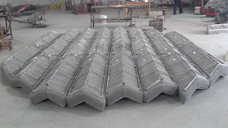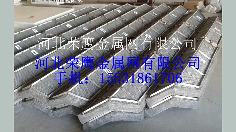 除具有HG/T21618-1998絲網除沫器、HG5-1404-81升氣管型絲網除沫器、HG5-1405-81縮徑型絲網除沫器、HG5-1406-81全徑型絲網除沫器、HG/T 21586-98抽屜式絲網除沫器的特點外,更具有以下特點:實現了氣走氣路,液走液路,基本消滅了二次夾帶現象,除沫效果顯著提高;因為網塊有傾斜角度,實際除沫面積增大15%,便于設計時調整氣流、速度、阻力和除沫效果;用一層波浪形絲網除沫器可達到二層絲網除沫器的除沫效果,節省了安裝空間,降低了單臺塔除沫器的造價。
