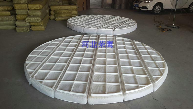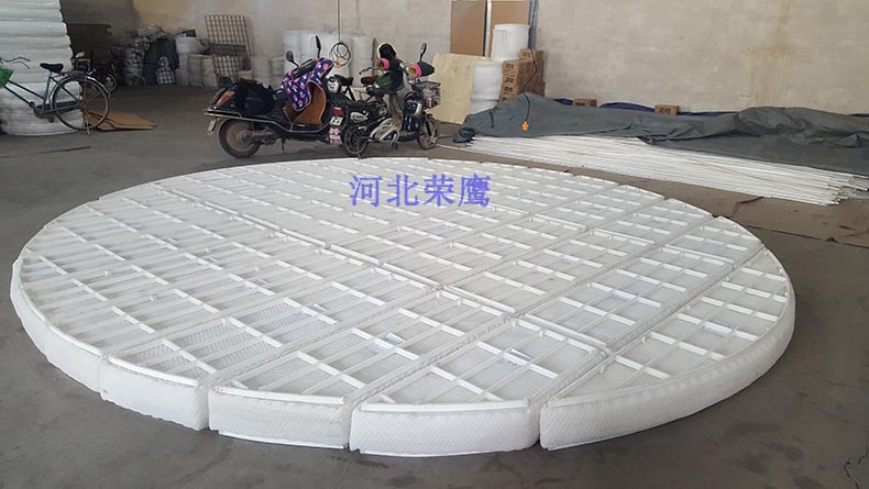 聚丙烯絲網除沫器,又名PP絲網除霧器,是由聚丙烯氣液過濾絲網和格柵兩部分構成,榮鷹公司使用優質聚丙烯(PP)線材針織而成的氣液過濾網作為去除霧沫的絲網,除沫器格柵根據客戶要求可以采用聚丙烯材質,也可以選擇不銹鋼材質。對于相同規格的除沫器產品,聚丙烯材質比不銹鋼材質價格要低一些。因此,在滿足使用需求的情況下,很多客戶更多地使用聚丙烯材質的絲網除沫器。